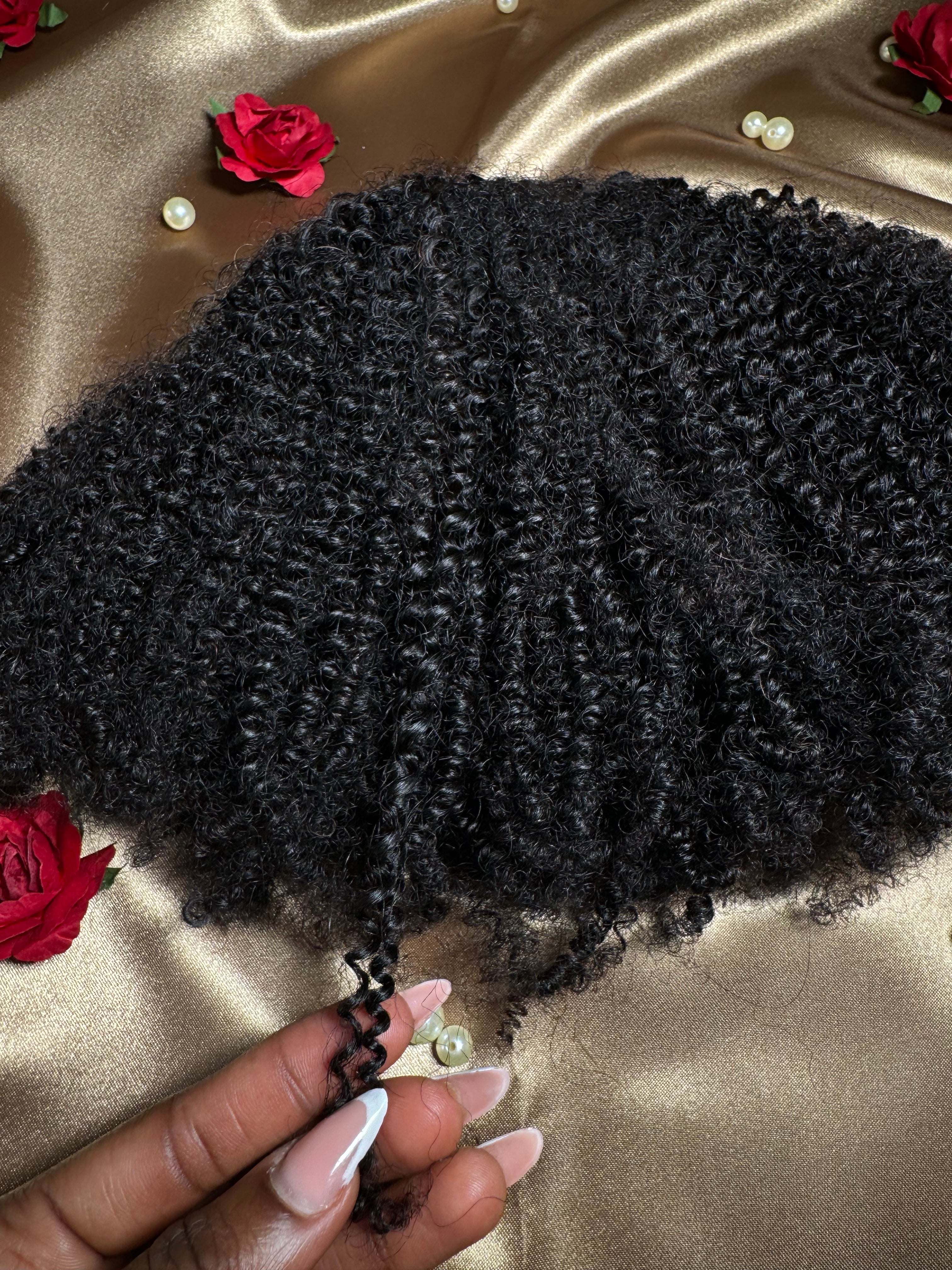 Cheveux Virgin double drawn, provenant de deux donneuses, travaillés pour imiter les textures afro (3C–4C) tout en restant naturels et polyvalents, durabilité 3 ans+Idéal pour un look très naturel au quotidien.